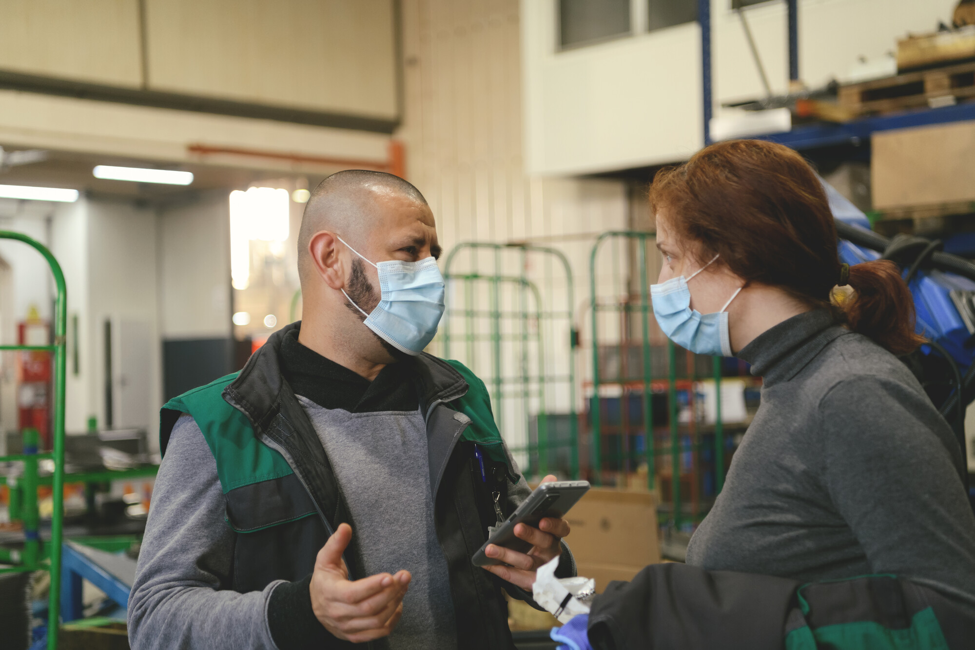 Die Übertragung erfolgt bei der Grippe in erster Linie als Tröpfcheninfektionen, aber auch durch sogenannte Schmierinfektionen auf Oberflächen. Bei Tröpfcheninfektionen erfolgt die Übertragung durch sogenannte Aerosole, welche beim Husten, Niesen und Sprechen entstehen. Dagegen kann es zu Schmierinfektionen beim Berühren von Türklinken, Besteck oder Händen anderer Leute kommen. Man geht davon aus, dass jeder Grippe-Infizierte im Durchschnitt 1-2 Personen ansteckt, wenn keine gezielten Hygienevorschriften – wie das Tragen einer Maske – eingehalten werden [7].COVID-19