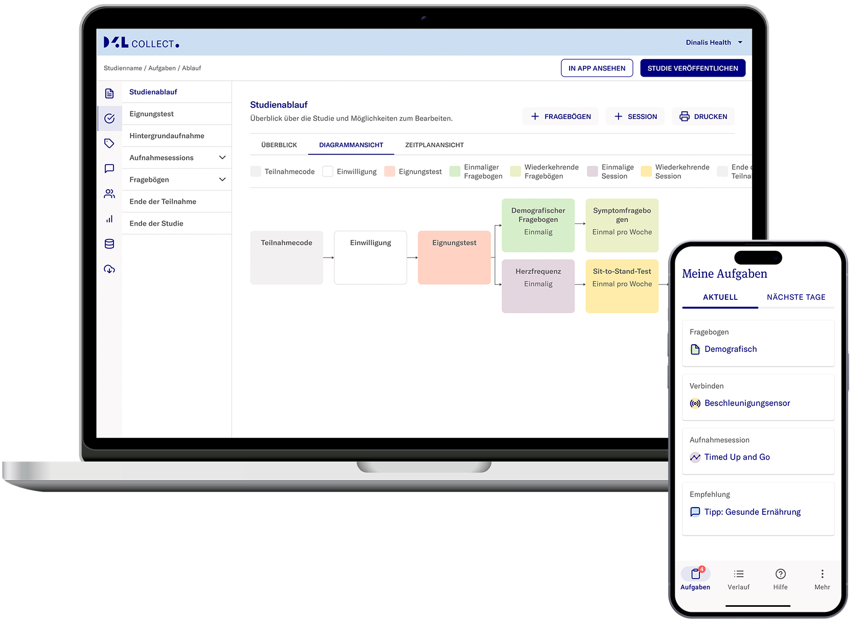 Führen Sie Ihre Studien im Gesundheitsbereich digital durch und integrieren Sie neben Daten aus Fragebögen auch Daten von Sensoren und Wearables. Sie erhalten einen harmonisierten Datensatz, mit dem Sie direkt weiterarbeiten können.