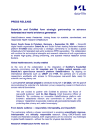 Seoul, South Korea & Potsdam, Germany – September 30, 2025 – Nonprofit digital health organization Data4Life and South Korea’s leading federated research platform EvidNet today announced a strategic partnership to co-develop a global infrastructure for federated real-world evidence (RWE) generation. The collaboration will combine the technological strengths and research networks of both organizations to enable high-quality, privacy-preserving, and scalable medical research across borders.
